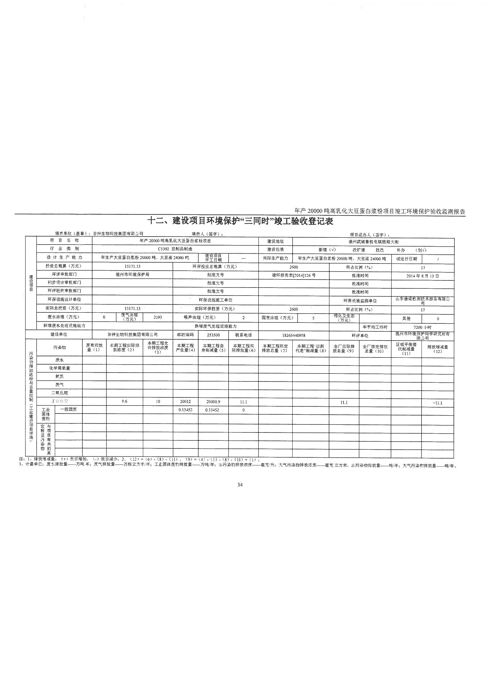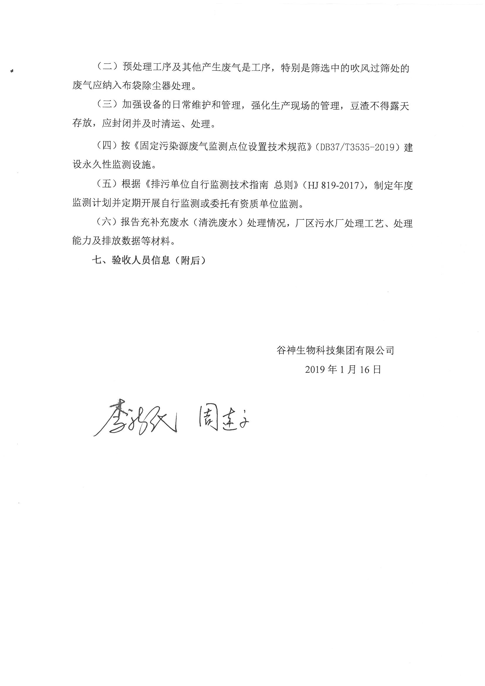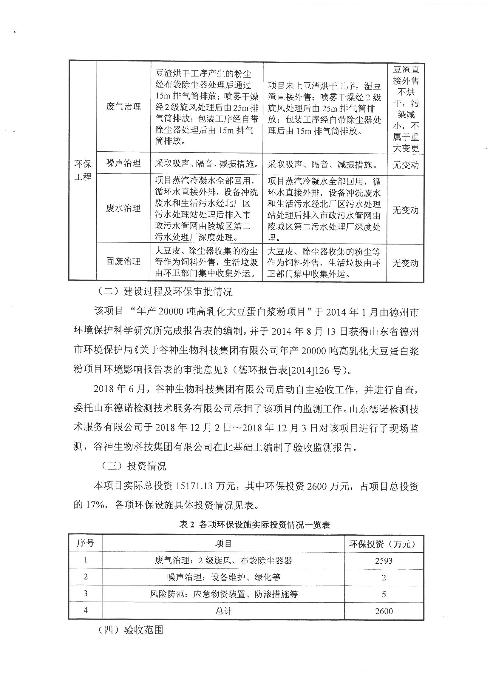 谷神生物科技集團有限公司年產20000噸高乳化大豆蛋白漿粉項目竣工環境保護驗收意見